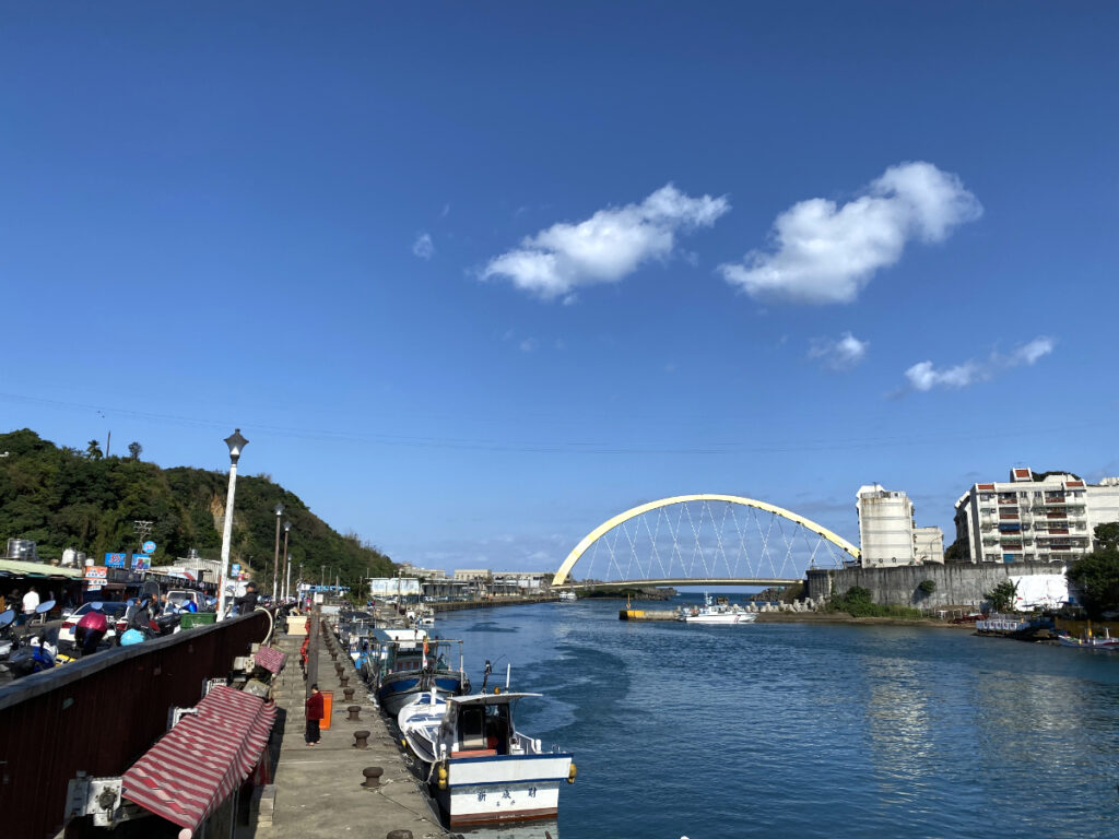 左邊是和平島觀光漁市,前方的橋是社寮橋。