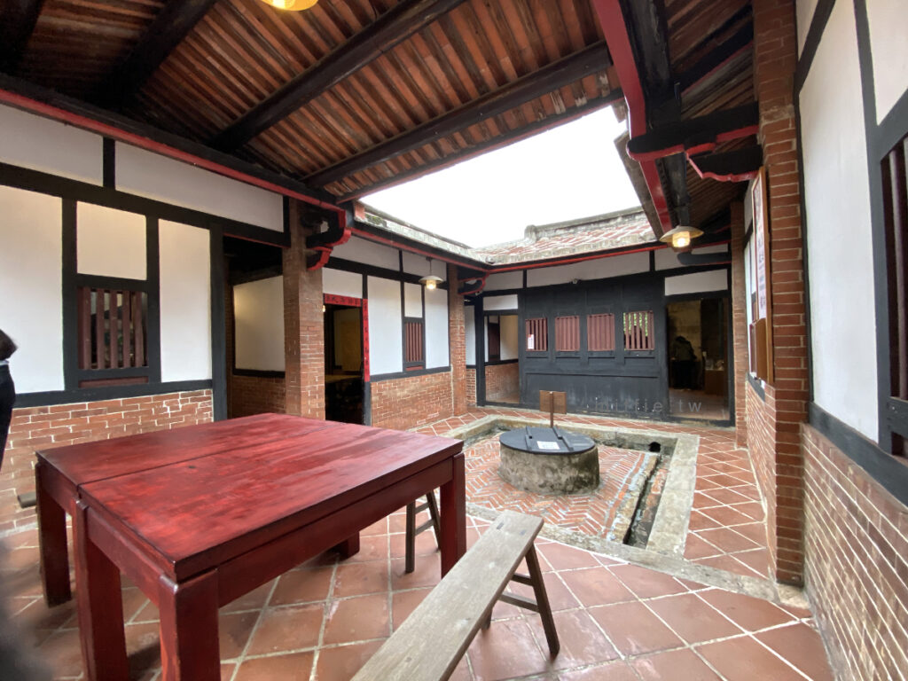 對於古宅,我知道的不多,詳細介紹就要去看人家官網比較準。我只知道古人很在意風水,所以蓋豪宅就有很多風水上的考量跟講究,一定要從中國請最好的師傅、工匠過來蓋,在建材上都要用當時最好的,像是石頭牆跟紅磚牆與對外窗,可以抵擋壞人放火燒,不像木造屋易燃而且隨便踹就破,也是有安全(防盜)的考量,前方的半月池,有蓄洪跟儲水的功能,在屋子裡就有井這真的是我見過的古厝裡的「真。豪宅」!比蘆洲李氏古厝還豪華的,大概就是霧峰林家、板橋林家了。