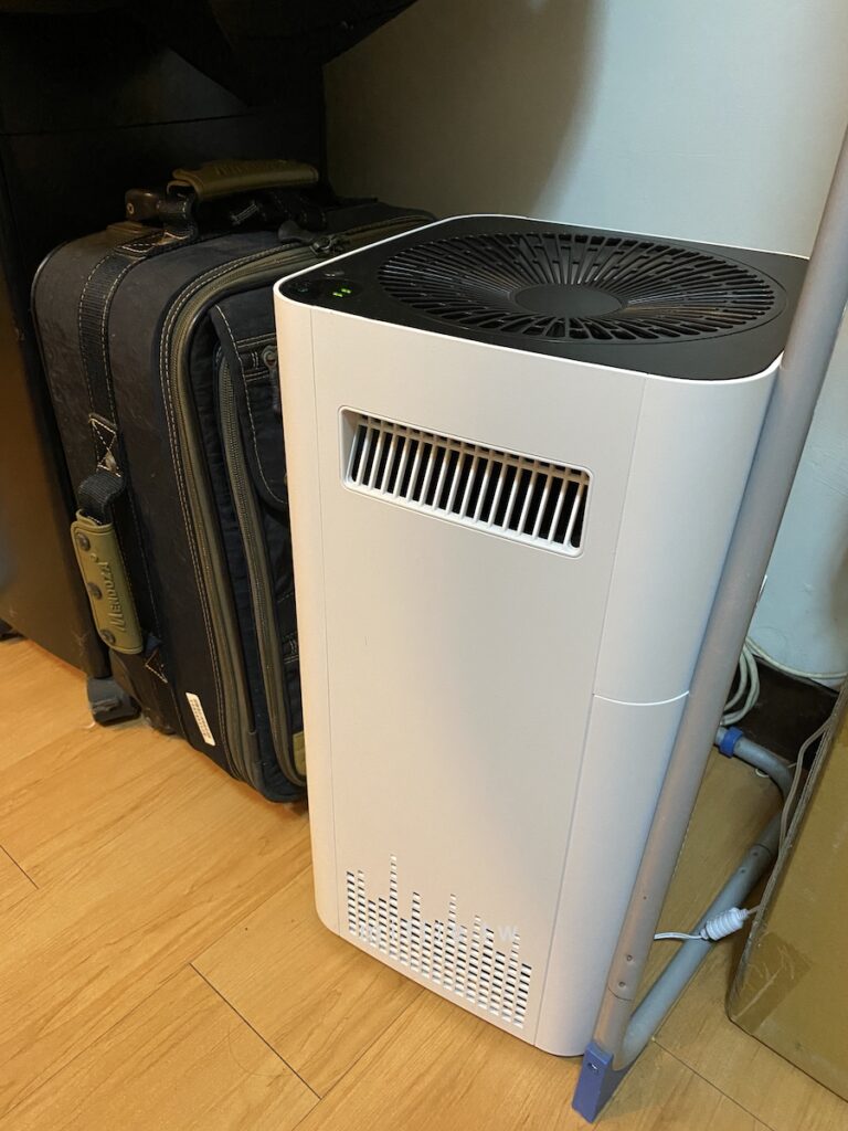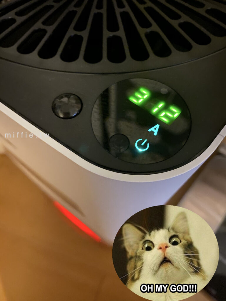 這台雖然不用買耗材來換,但是每兩個月要清洗一次,所以除了要勤勞一點的自己洗之外,家裡也要有可以晾五道濾網的空間,我的套房有點小,曬濾網的時候,人就有點走不過去了。