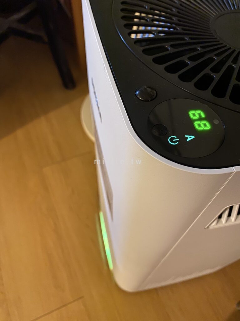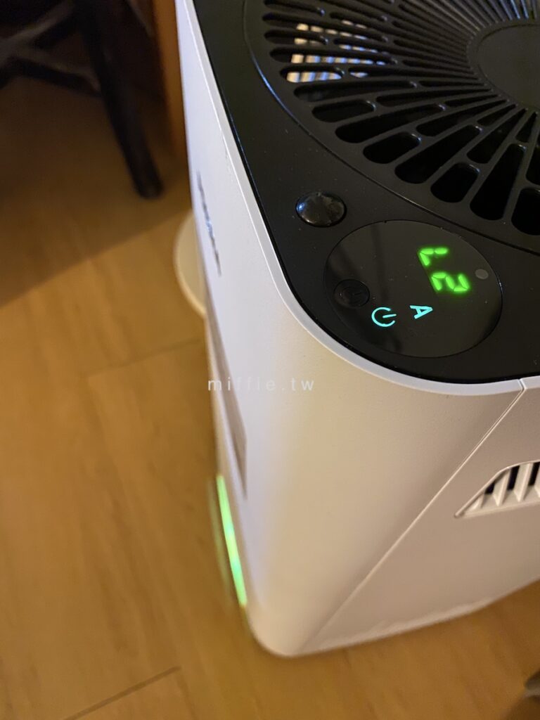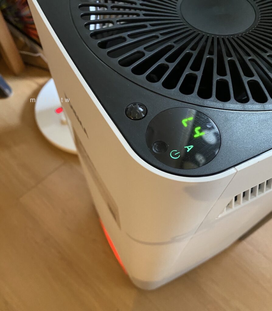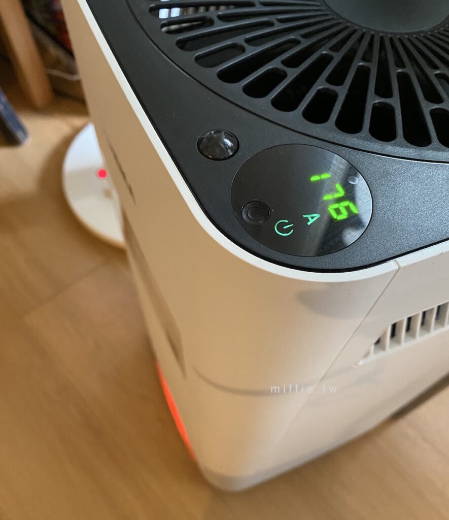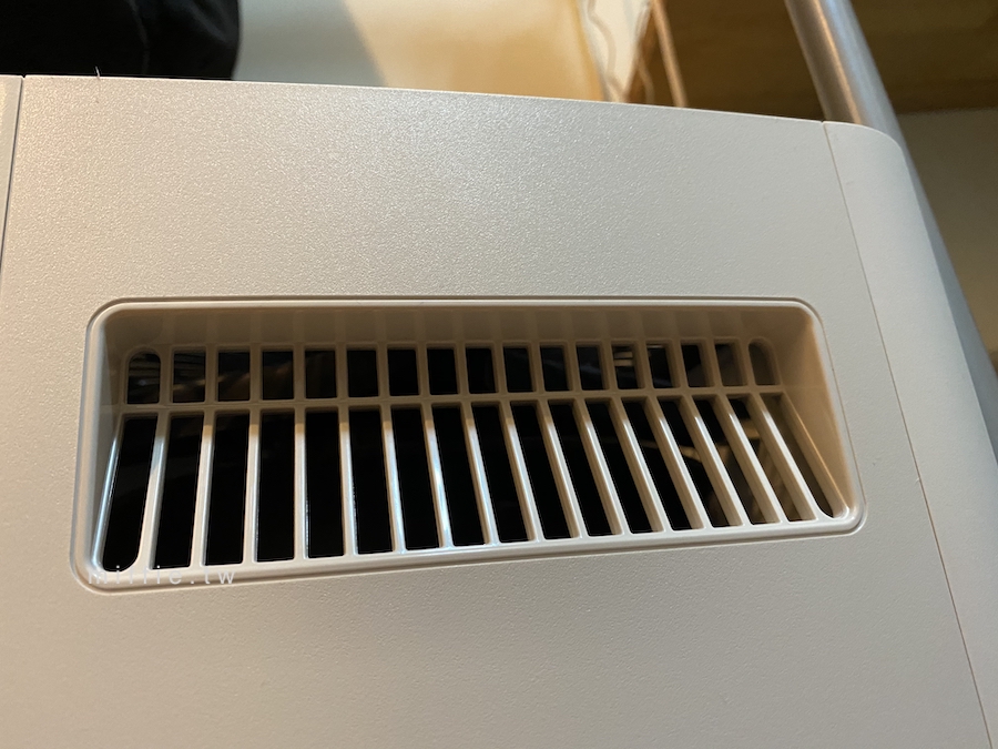 除了我始終不懂的濾網技術(TPA跟HEPA哪個比較有用?)之外,這台的外型簡約而且小巧,尤其兩側出風口同時也是把手的設計我很喜歡,只是説,其實這個設計適合擺在東西不多的空間,因為左右後方都需要有至少20公分以上的空間,以免堵住下方進氣口,而且上方是出氣口的設計,所以機器也不適合擺在桌、櫃下方,以免過濾好的空氣沒辦法良好擴散到整個空間,這點就是我之前的Blueair比較適合的地方,但是他又貴又笨重就是。
