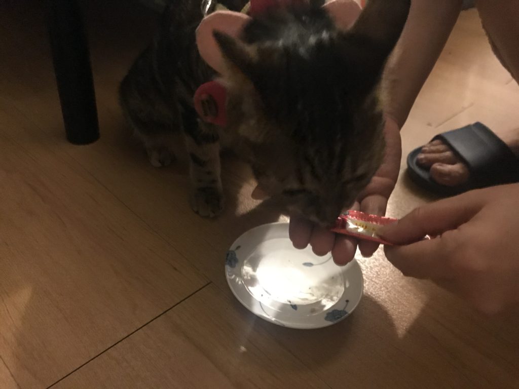 (照老妹指示,趕緊送上肉泥,培養一下感情)